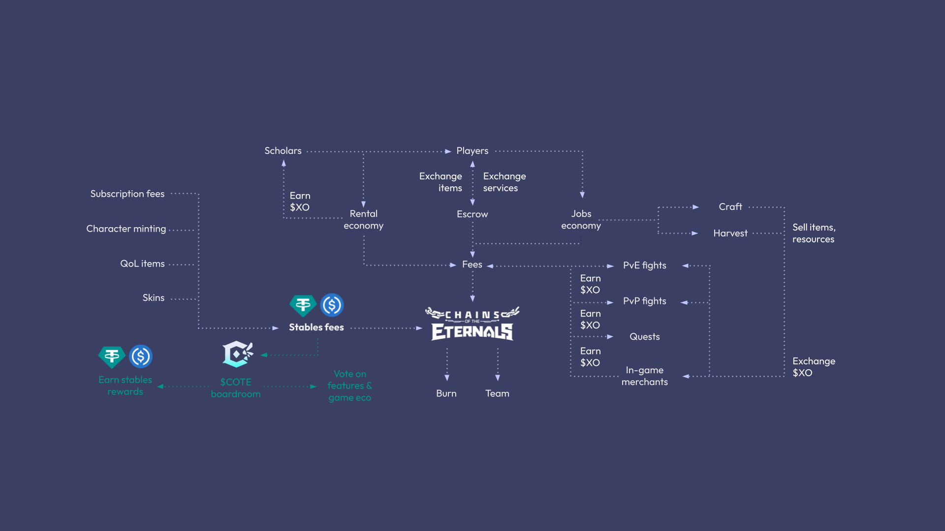 $XO is the in-game currency of the Chains of the Eternals world. The in-game economy will all be in $XO.